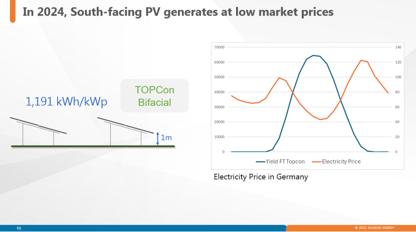 随着全球光伏装机规模持续增长,传统南向倾角电站集中在正午时段发电,致使“电价低谷”与“收益失衡”问题日益凸显,部分市场甚至频现负电价,这种发电高峰与电价低谷的错位,正迅速侵蚀电站的投资回报率。Christian Comes指出:“在光伏高渗透率市场,收益不再由度电成本(LCOE)主导,而是需要转向与分时段价值(TOD)深度匹配的新模式。”