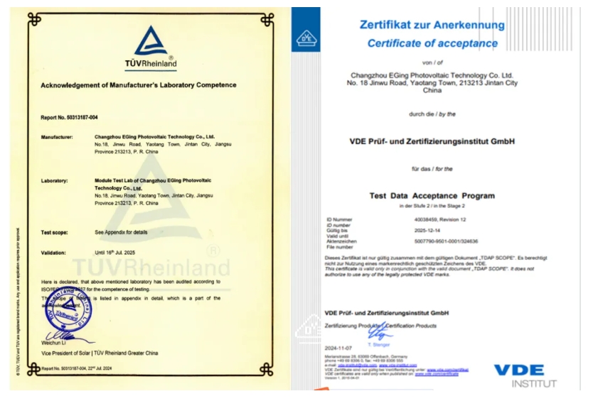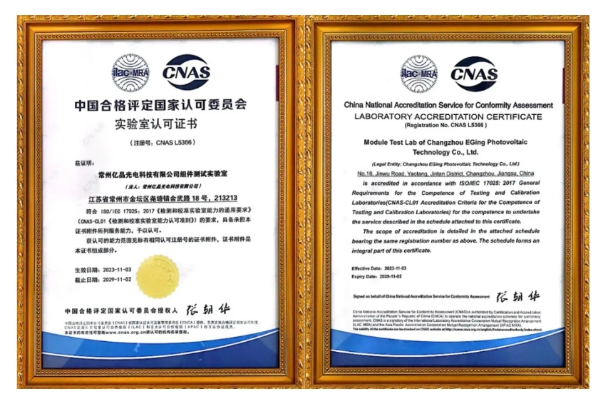 • 组件IV测试: 配备3A+级模拟器,并在《2024年光伏组件关键光电性能》能力验证中获评“满意”结果。
