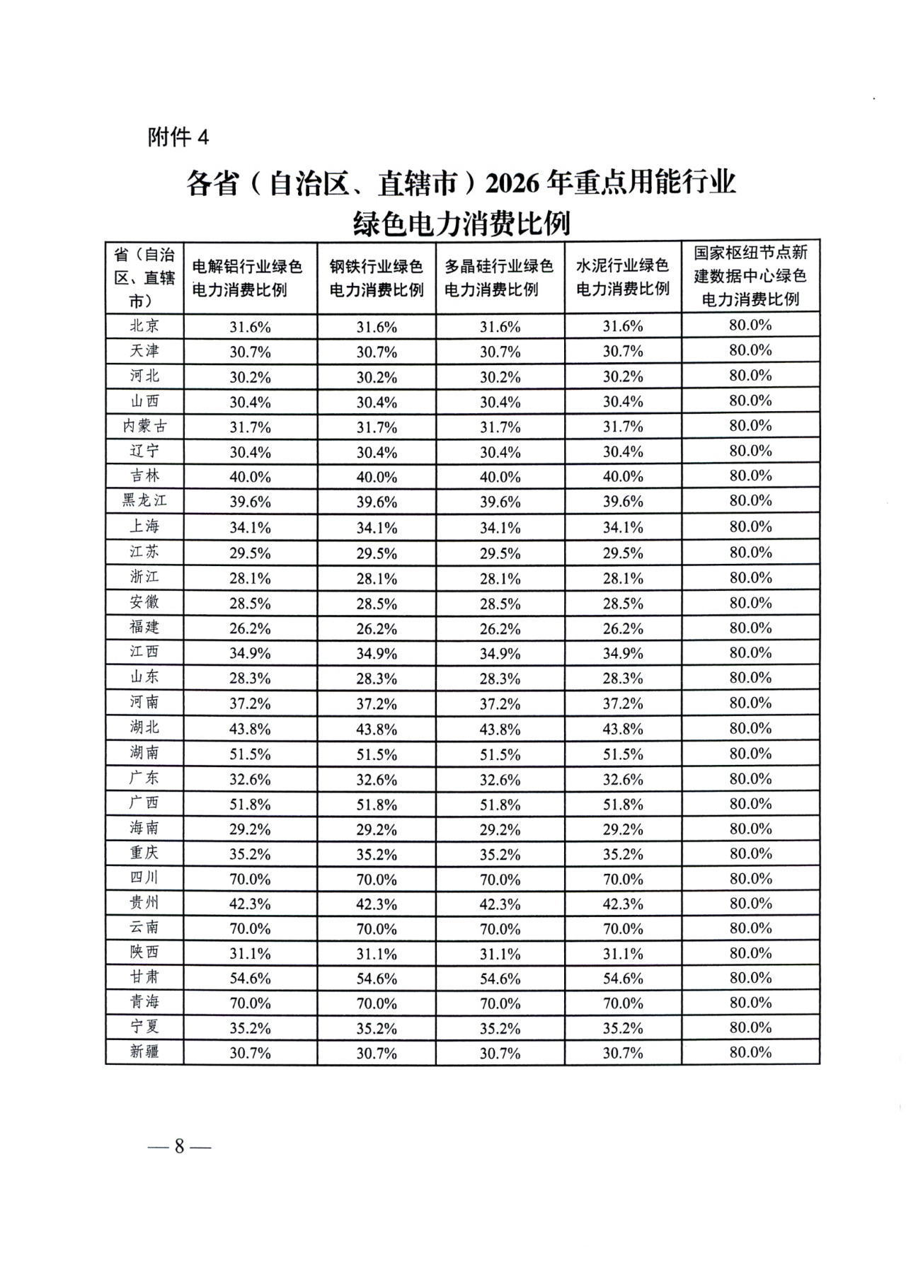 2、对五大行业(电解铝、钢铁、水泥、多晶硅、数据中心)单独增设绿电比例要求