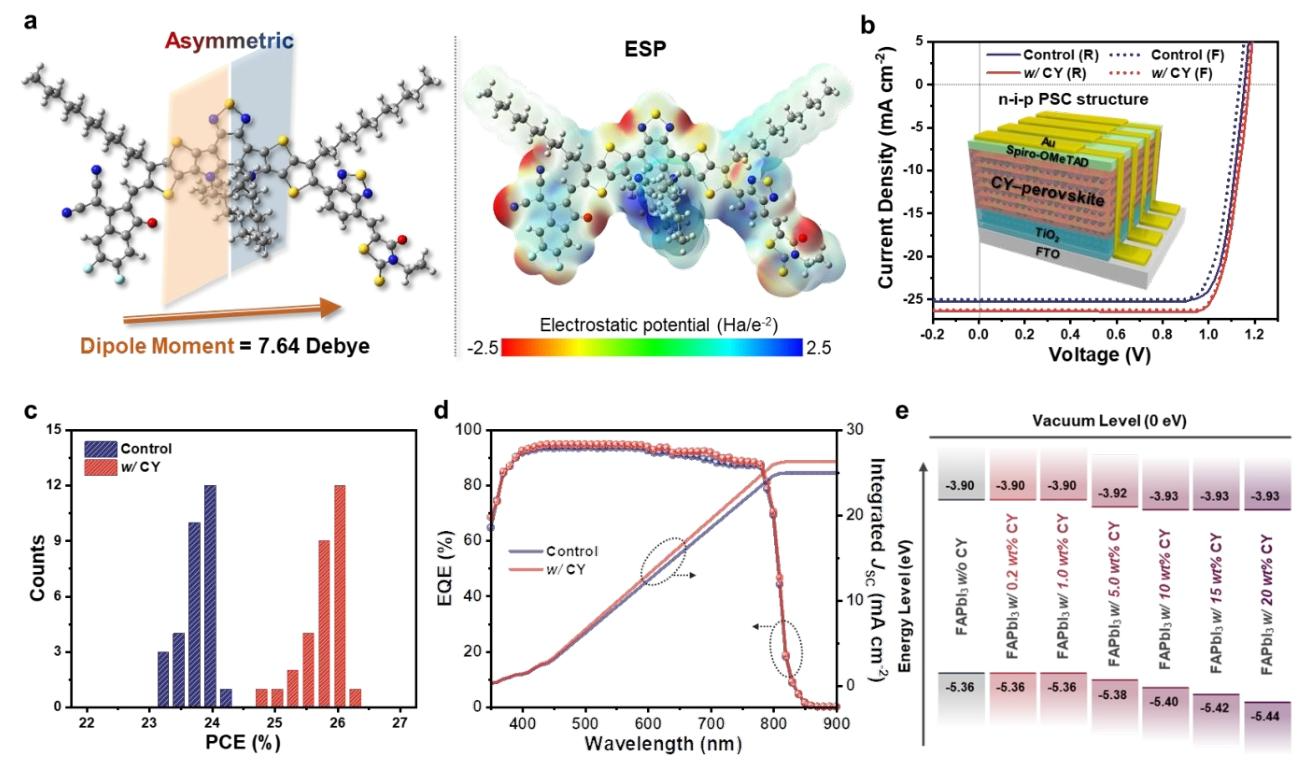局域相位调制异质结构通过 CY 的大量掺入,实现了 PSCs 的高效率(26.0%)与超稳定性,为有机半导体 - 钙钛矿电池提供了新理论基础和应用范式。
