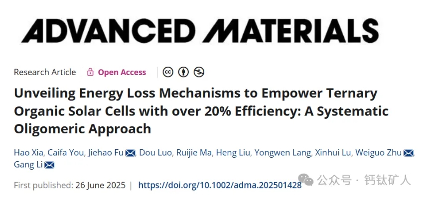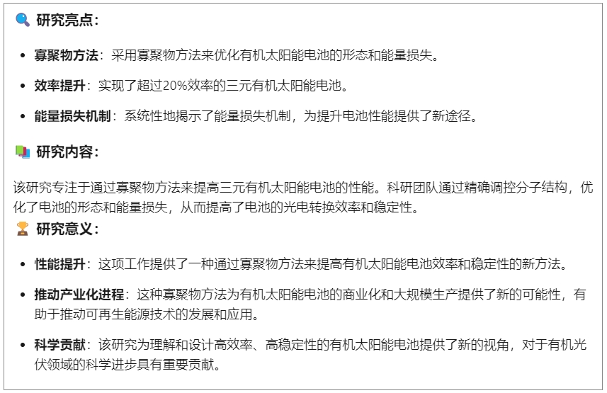 在有机太阳能电池中,三元策略是获得高效有机太阳能电池的主流途径,深入理解提高开路电压(VOC)的工作机理和材料选择标准是实现有机太阳能电池进一步突破的关键。