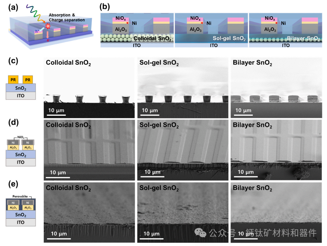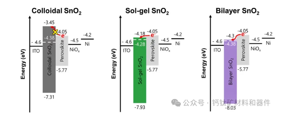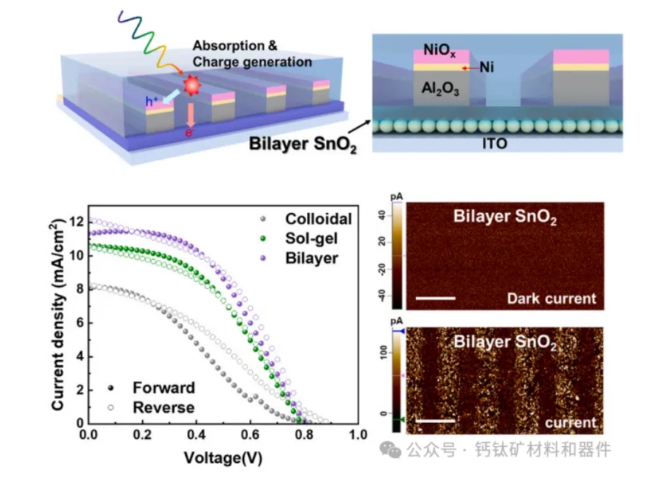 韩国全北大学、首尔大学和忠南道大学的研究人员通过结合纳米颗粒 SnO2 和溶胶-凝胶SnO2开发了电子传输层(ETL),通过简单的旋涂方法形成双层。这种配置可在钙钛矿/ETL 界面处产生均匀的薄膜,降低陷阱密度并优化能级对准,从而促进高效的电荷转移。