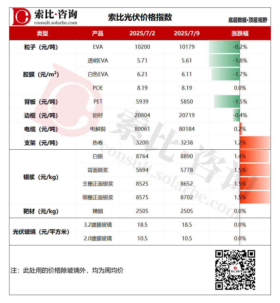 1、数据均为索比咨询整理,价格为均价,有疑问请联系我们,欢迎探讨
