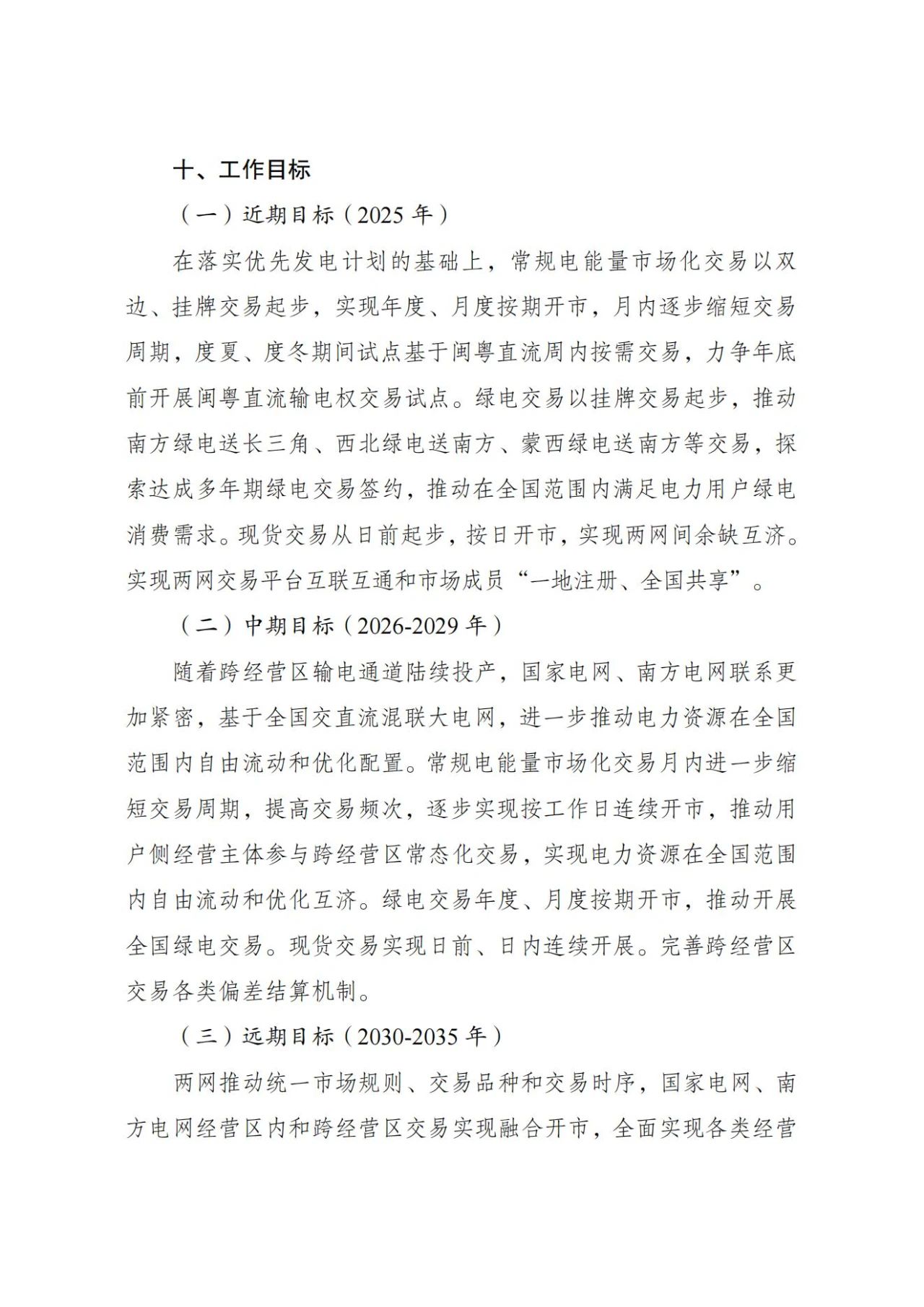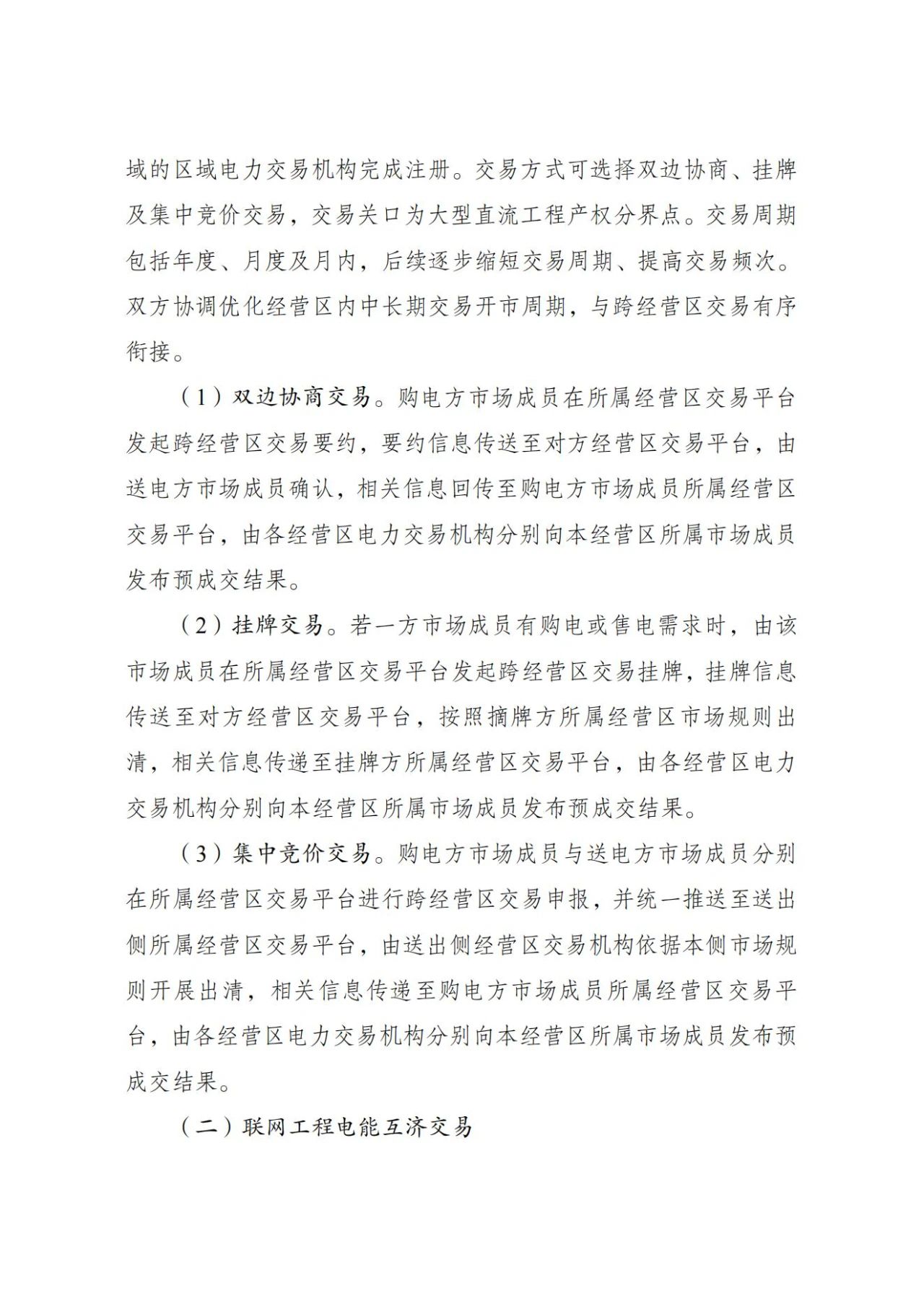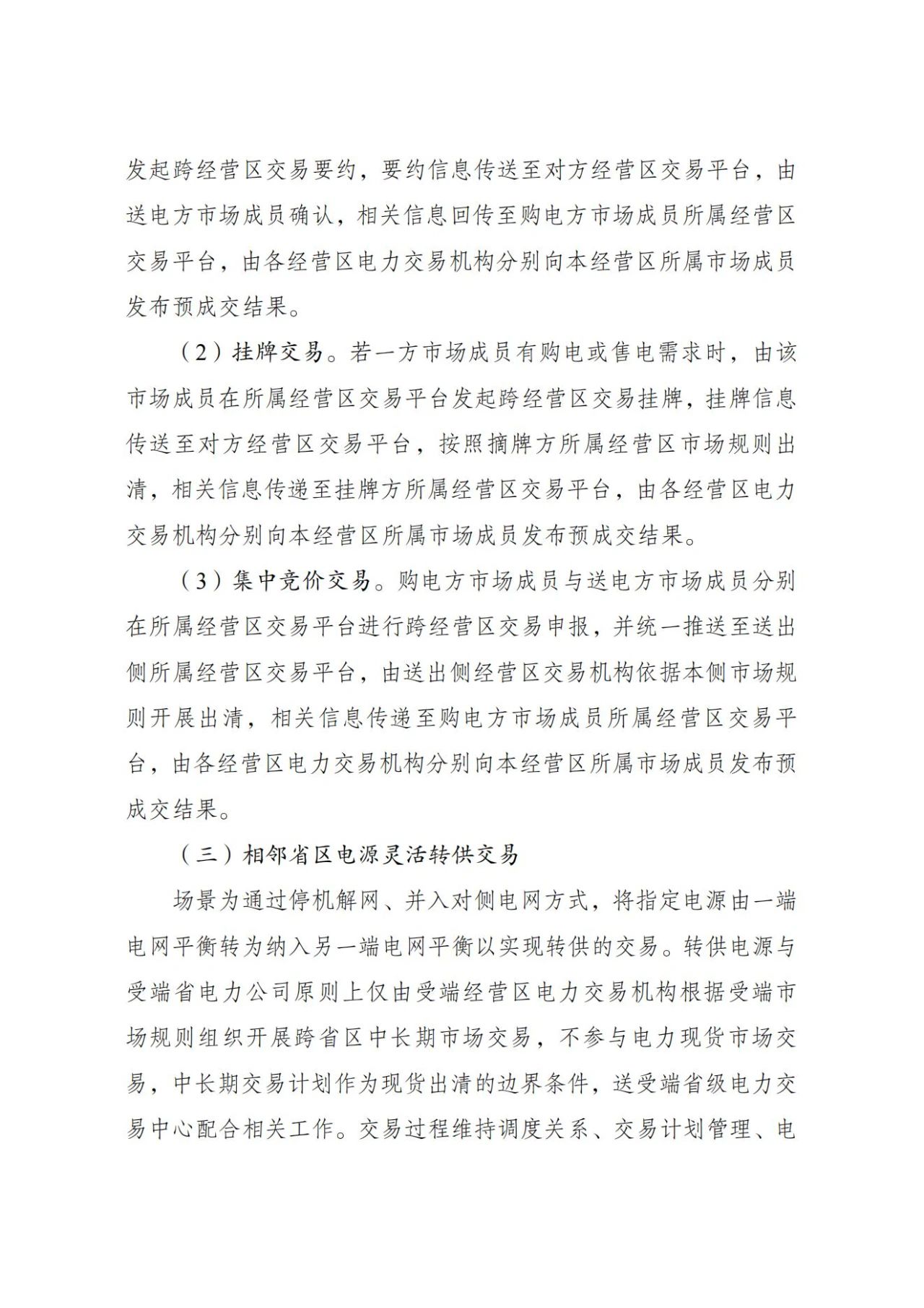 五、国家发展改革委、国家能源局将持续强化对跨电网常态化交易的指导,健全配套政策,及时协调解决问题,进一步完善全国统一电力市场体系。