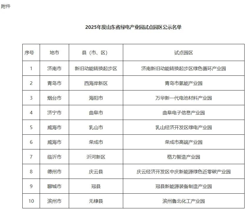 附件:2025年度山东省绿电产业园试点园区公示名单