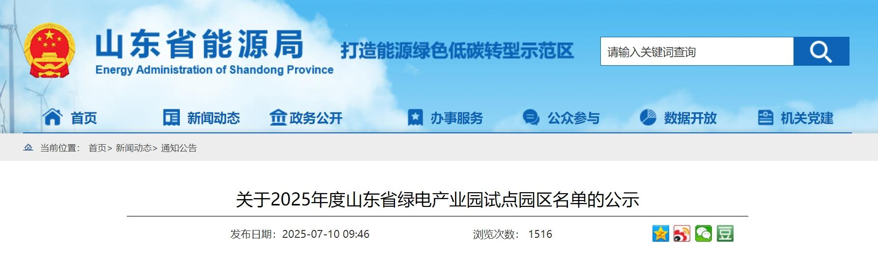 根据《关于开展2025年度山东省绿电产业园试点申报工作的通知》要求,经各市推荐和专家评估,拟将烟台万华新一代电池材料产业园等10个园区确定为绿电产业园试点园区,现予以公示。