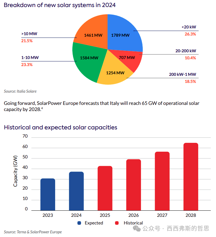 Solare)的数据,2024年公用事业规模项目的安装率同比增长了163%。与此同时,由于“超级补贴”(Superbonus)激励政策的终止,户用领域有所降温,导致新增户用系统并网数量出现下滑。