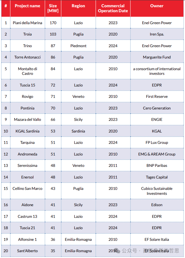 Solare Italia,现在榜上维持两个项目,总容量为71兆瓦,这反映了竞争格局的演变。