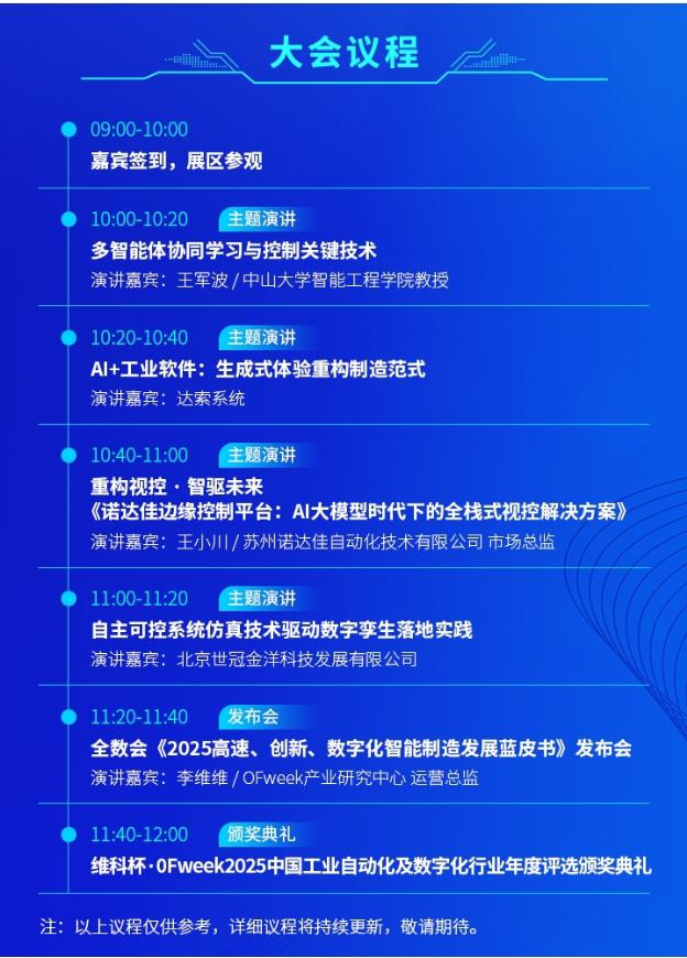 OFweek2025工业自动化及数字化行业年度评选颁奖典礼、维科杯·OFweek2025汽车行业年度评选颁奖典礼等20+场智能工业数字化专业会议与活动。
