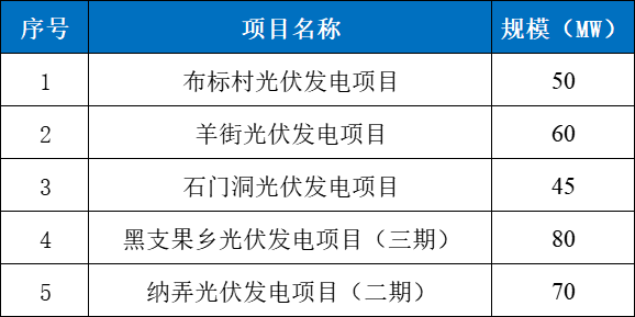根据竞配公告,列入《云南省2025年第一批新能源项目开发建设方案》规划清单的5个集中式光伏发电项目,总装机容量30.5万千瓦,具体如下: