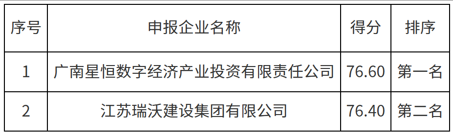 根据中标公告,广南星恒数字经济产业投资有限责任公司位列申报企业第一名,详情如下: