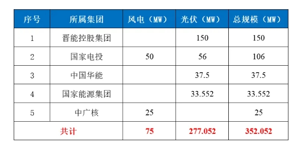 从项目所属集团来看,晋能控股废止项目规模最大,达150MW,均为光伏发电项目。具体见下: