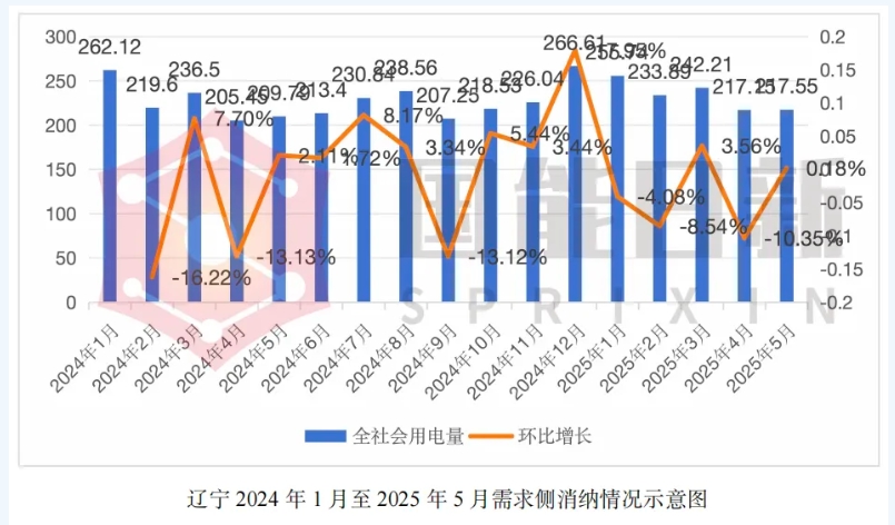 2025 年相较于 2024 年,辽宁省需求侧消纳延续了相似的波动周期,但幅度变化明显。