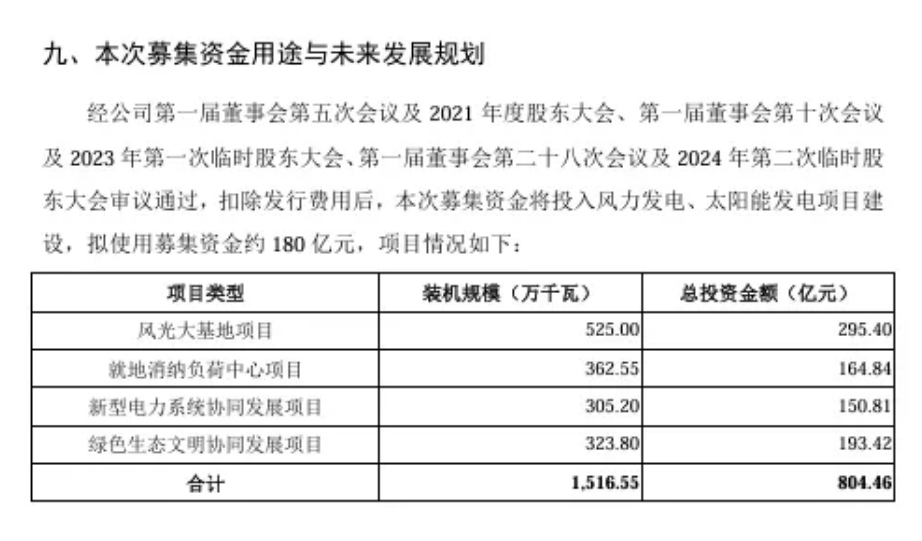 华电新能此次发行价为3.18元/股,超额配售选择权全额行使后总股本达57.14亿股,募集资金总额最高达181.71亿元。募投项目聚焦风光大基地、负荷中心消纳、新型电力系统协同及绿色生态文明四大领域,总投资额超800亿元,规划新增装机容量1516.55万千瓦。其中,内蒙古腾格里、甘肃腾格里、新疆天山北麓等清洁能源基地项目备受关注,这些项目均配套调节电源并匹配特高压外送通道,直指国家“双碳”目标与乡村振兴战略的融合痛点。