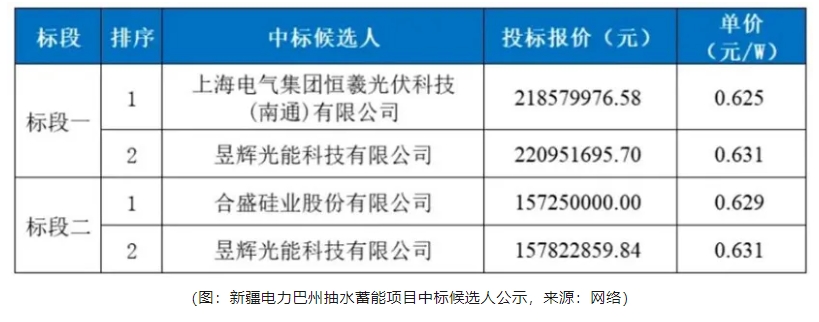 12月17日,该项目进行中标候选人公示,中标组件在0.625—0.631元/W区间,合盛硅业等低于成本价的单位纷纷入围。
