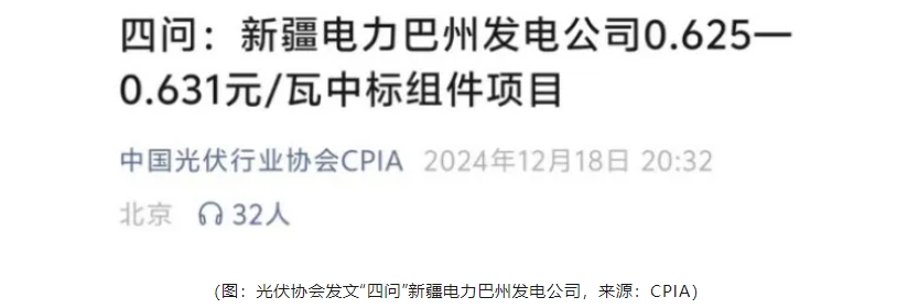 赤裸裸的“价低者得”无疑令群情激愤。隔日,行业协会发出措辞严厉的“灵魂四问”,可最终却没有等到任何回应——实际上,该单位此前的招采信息中明确设置了0.6313元/瓦的最高投标限价。