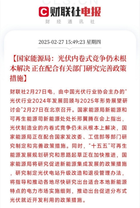 (图:国家能源局:光伏内卷式竞争仍未根本解决,来源:财联社)