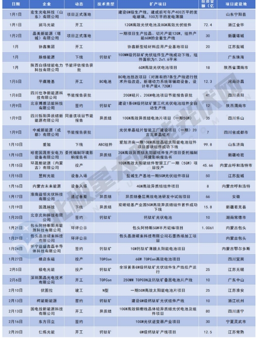 如北京博雅洁能科技有限公司等纷纷押注钙钛矿;国电投新能源科技有限公司、四川铄阳异质结新能源有限公司则分别计划投建10GW异质结项目。