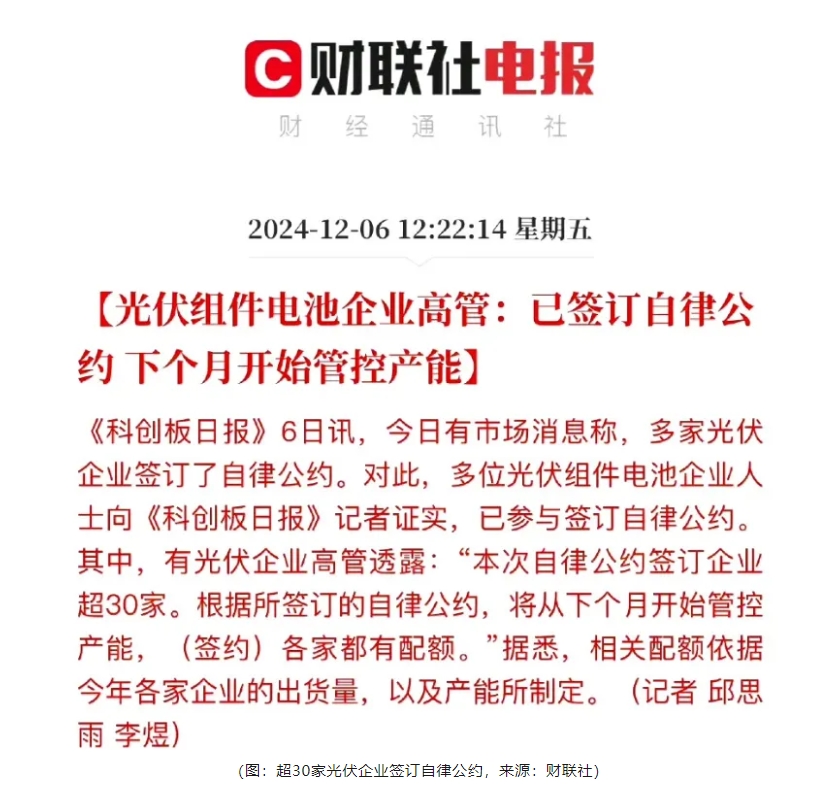 根据公约,从2025年1月开始管控产能,签约企业各有配额,相关配额依据2024年各家企业的出货量以及产能制定。