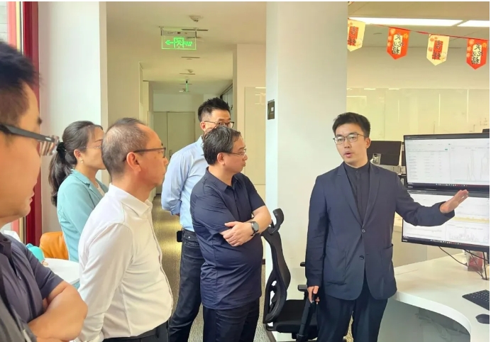 调研期间,简斌一行实地走访协合运维电力交易中心与全球监控中心,系统调研了协合运维自主研发的“聆风”电力交易平台的核心功能模块,以及“运检销”协同运作模式和AI大模型在报价策略上的应用。