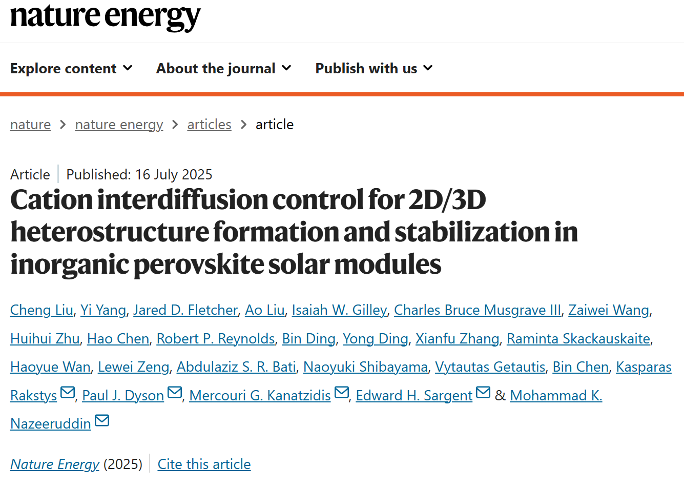 效率纪录:实现无机钙钛矿组件(16 cm²)19.8%的认证效率,为当前公开报道的最高值。