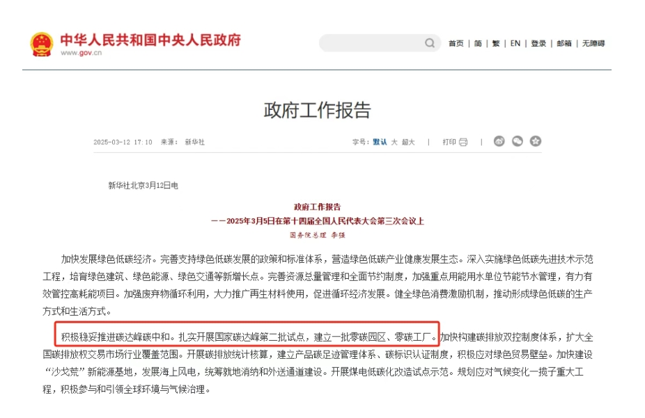 2024年12月中央经济工作会议首次提出“零碳园区”概念,2025年的政府工作报告中,明确提及要积极稳妥推进碳达峰碳中和。扎实开展国家碳达峰第二批试点,建立一批零碳园区、零碳工厂。这也标志着,新能源发展正式进入零碳政策的元年。