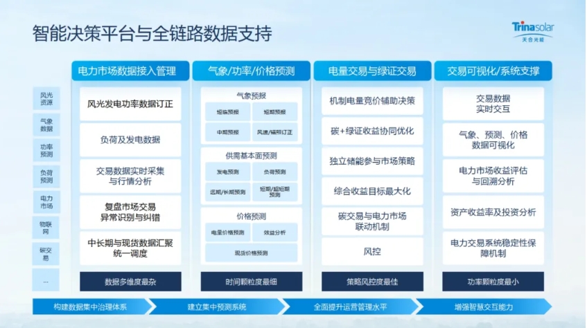 天合光能依托“电碳一体”能力链,为电站投资者提供全周期解决方案。在资源评估阶段,通过300+地市节点电价历史数据分析,辅助选址决策;在投后运营阶段,其虚拟电厂平台已接入超40MW分布式资源,具备负荷预测与实时竞价能力,在江苏、安徽等省验证了市场化度电增收路径。同时,天合提供绿电绿证交易代理服务,2024年累计交易量达100万张,帮助电站在环境权益市场获取溢价。对于增量项目,天合更提供从机制电价竞标策略到储能配置优化的全流程服务,将政策挑战转化为收益增长机遇。
