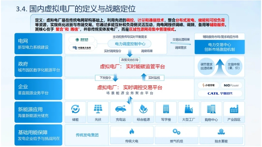 面对市场化带来的不确定性,虚拟电厂成为破局关键。它通过聚合分布式光伏、储能、可调负荷等资源,实现四大核心价值:一是规模效应提升议价权,将分散电站整合为统一主体参与电力现货、绿电交易及辅助服务市场;二是智能决策优化收益,依托气象预测、电价分析和交易策略模型,动态调整中长期合约与现货申报比例,例如通过储能转移光伏午间电量至高价时段套利;三是风险对冲能力,在山东等现货试点省份,虚拟电厂已实现聚合电站度电增收0.03-0.06元,并通过绿证交易额外获取环境权益收益。四是构建电网灵活的稳定性,帮助电网增加新能源消纳能力,维持频率和电压的稳定,提升电网安全性和可靠性,聚沙成塔成为智能调度和灵活资源的基石。