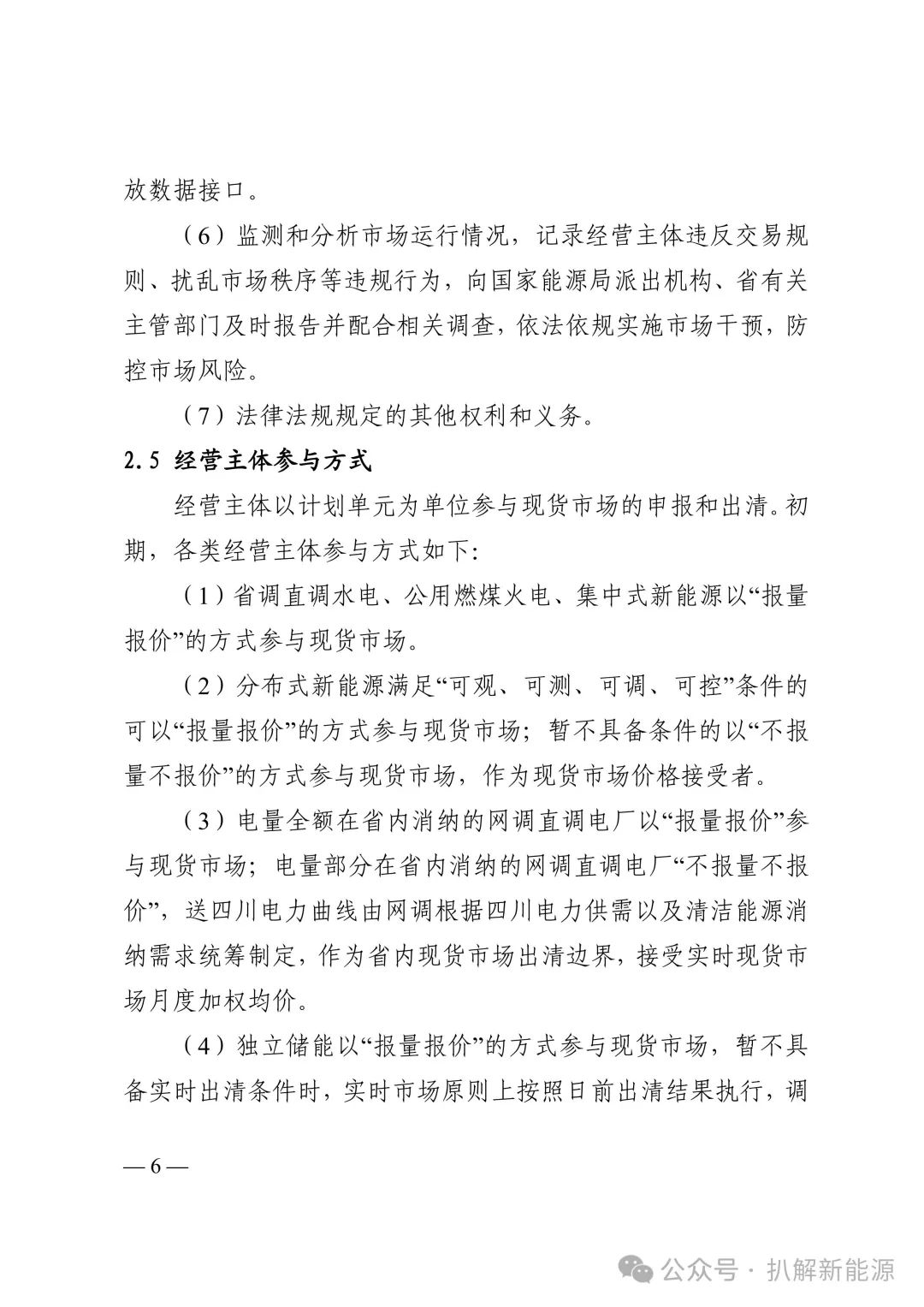 分布式新能源满足“可观、可测、可调、可控”条件的可以“报量报价”的方式参与现货市场;暂不具备条件的以“不报量不报价”的方式参与现货市场,作为现货市场价格接受者。