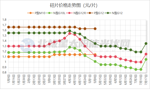 硅业分会表示,目前硅片企业已经初步达成共识,后续硅片新一轮报价会出现:N型G10L 报价1.45元/片、N型G12R报价1.65元/片、