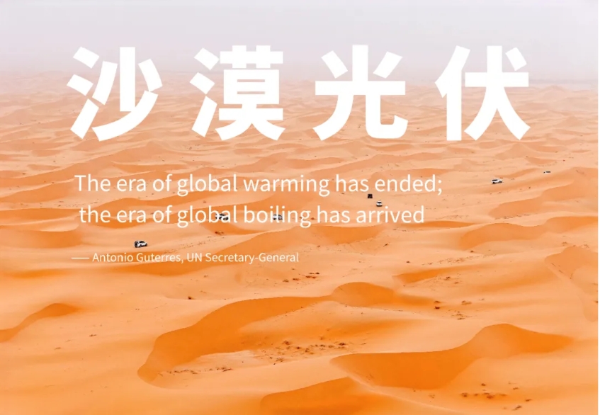 由此来看,变暖、干旱、干热,似乎已成为我们这个时代的底色,这并不是一个好消息。但在这样的底色中,同样也存在着一抹亮色,一种对抗气候危机的独特力量,一种能将炙烤转化为生机的可能——沙漠光伏。