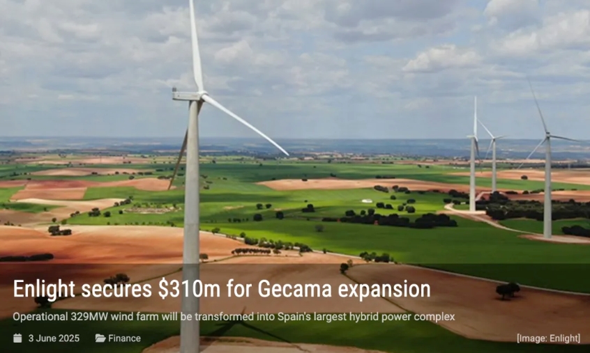 该项目由Enlight开发,融合风电、光伏和电池储能技术,在其329MW的Gecama风电场扩建为西班牙规模最大的混合可再生能源综合体,新增光伏发电阵列和电网级储能系统,项目预计在2026年下半年实现商业化运营。