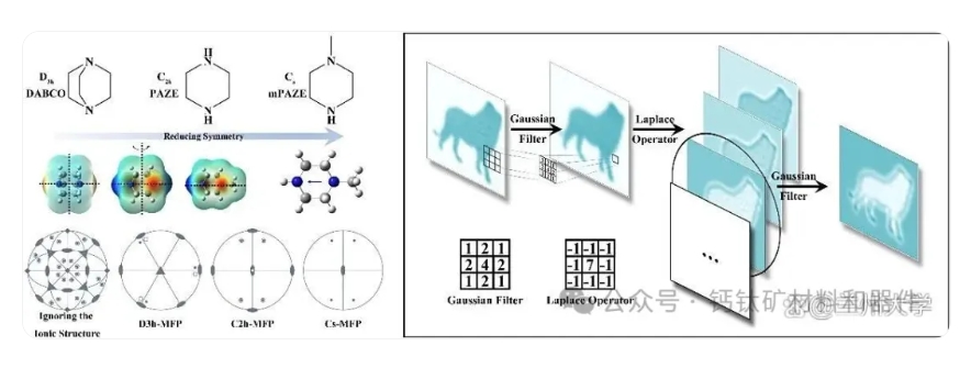 基于此,近日团队进一步提出基于体光伏效应(BPVE)实现自供能探测的新思路,并首次构建了基于极化MFP材料的自供能X射线探测器。团队以A位阳离子对称性调控为核心设计策略,通过构筑非对称离子构型诱导晶体极性,增强材料内部的极化电场以驱动载流子分离与收集。通过理论计算结合实验辅助证实了极性基团对体系中缺陷态与深能级响应的调控作用,辨析了其作用机理。所构建器件在0V偏压下实现了超高的探测灵敏度。同时,研究还提出了基于该类器件的“传感器内计算”成像新方案,为构建高性能X射线成像系统提供了参考。相关成果以“Evidence of Cation Symmetry Reduction Induced Bulk Photovoltaic Effect in Metal-Free Perovskite for Efficient Self-Powered X-Ray Detection”为题发表在《Advanced Materials》上 (Adv. Mater. 2025, 37, 2502335)。