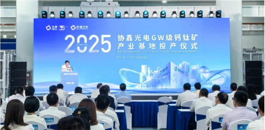 协鑫光电吉瓦级钙钛矿产业基地于2023年12月27日在江苏昆山高新区奠基。2025年6月24日,在江苏省委副书记、苏州市委书记刘小涛,昆山市委书记陈丽艳等领导的共同见证下,该基地正式投产,标志着全球钙钛矿光伏技术正式迈入商业化规模量产的新纪元,为全球光伏行业攀登技术奇点树立了重要里程碑。