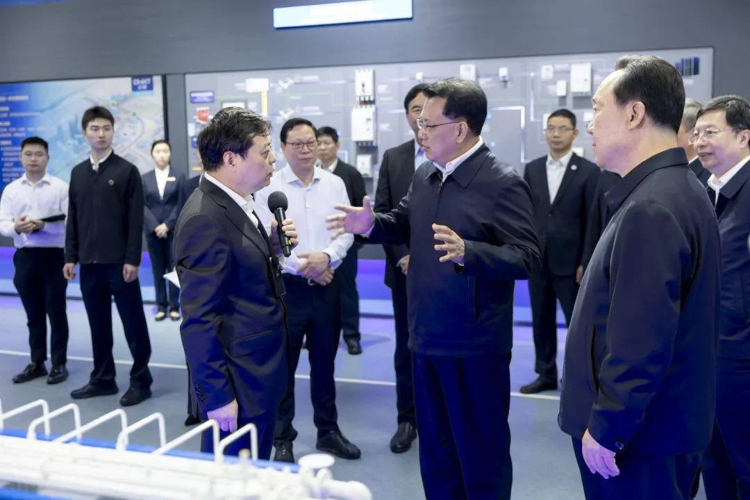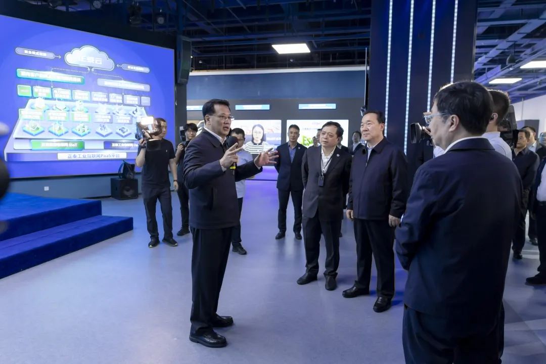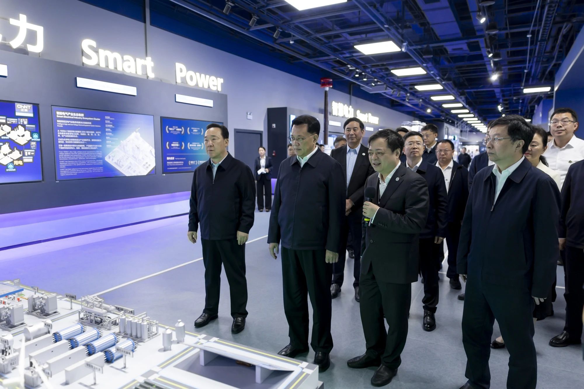 袁家军一行深入正泰创新体验中心,听取南存辉关于正泰聚焦电力新能源全产业链持续创新的汇报,对企业坚守实业、推动绿色低碳高质量发展取得的成果表示肯定。