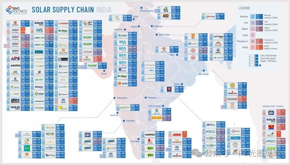 印度太阳能新增产能全景图,来源:Sinovoltaics