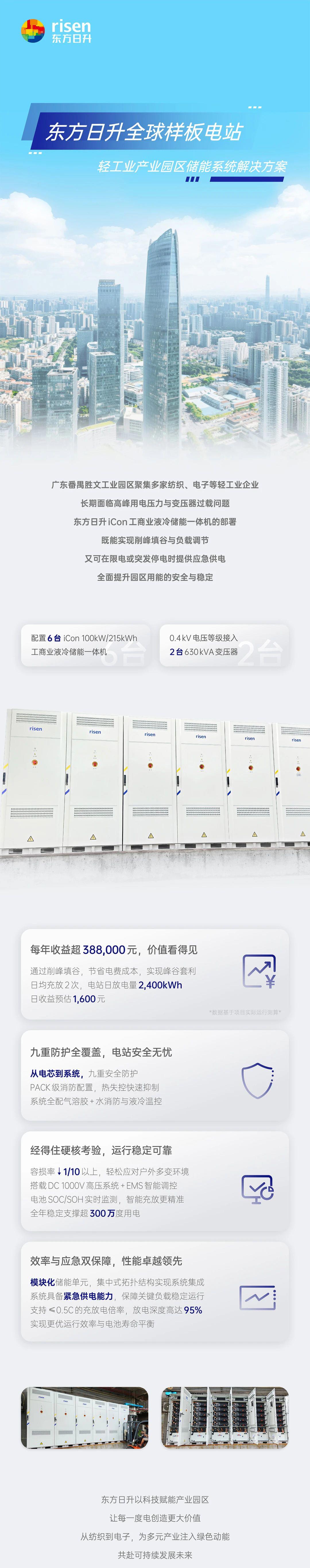 扎根广州市番禺区,东方日升为轻工业产业园区建起储能样板电站,用科技赋能每一度电,让绿色动能滋养园区,共赴可持续未来。