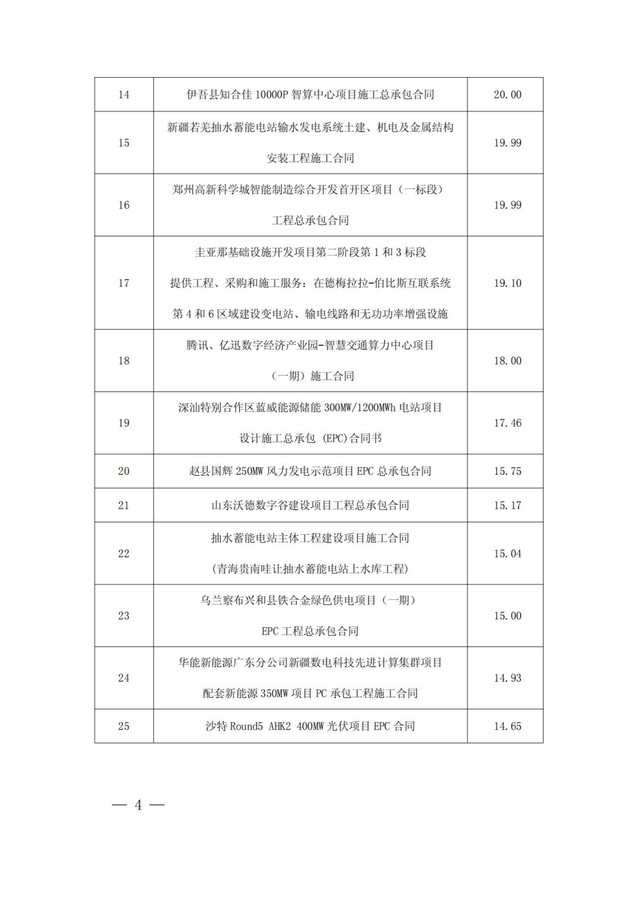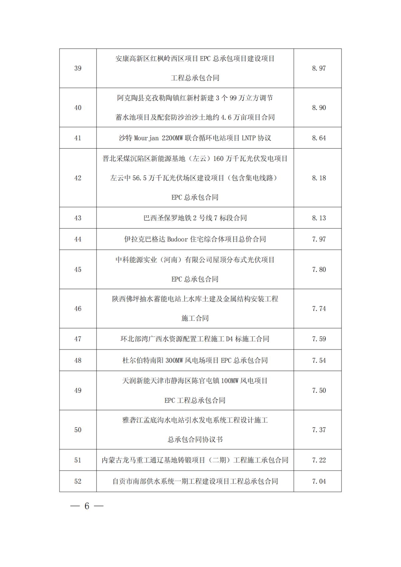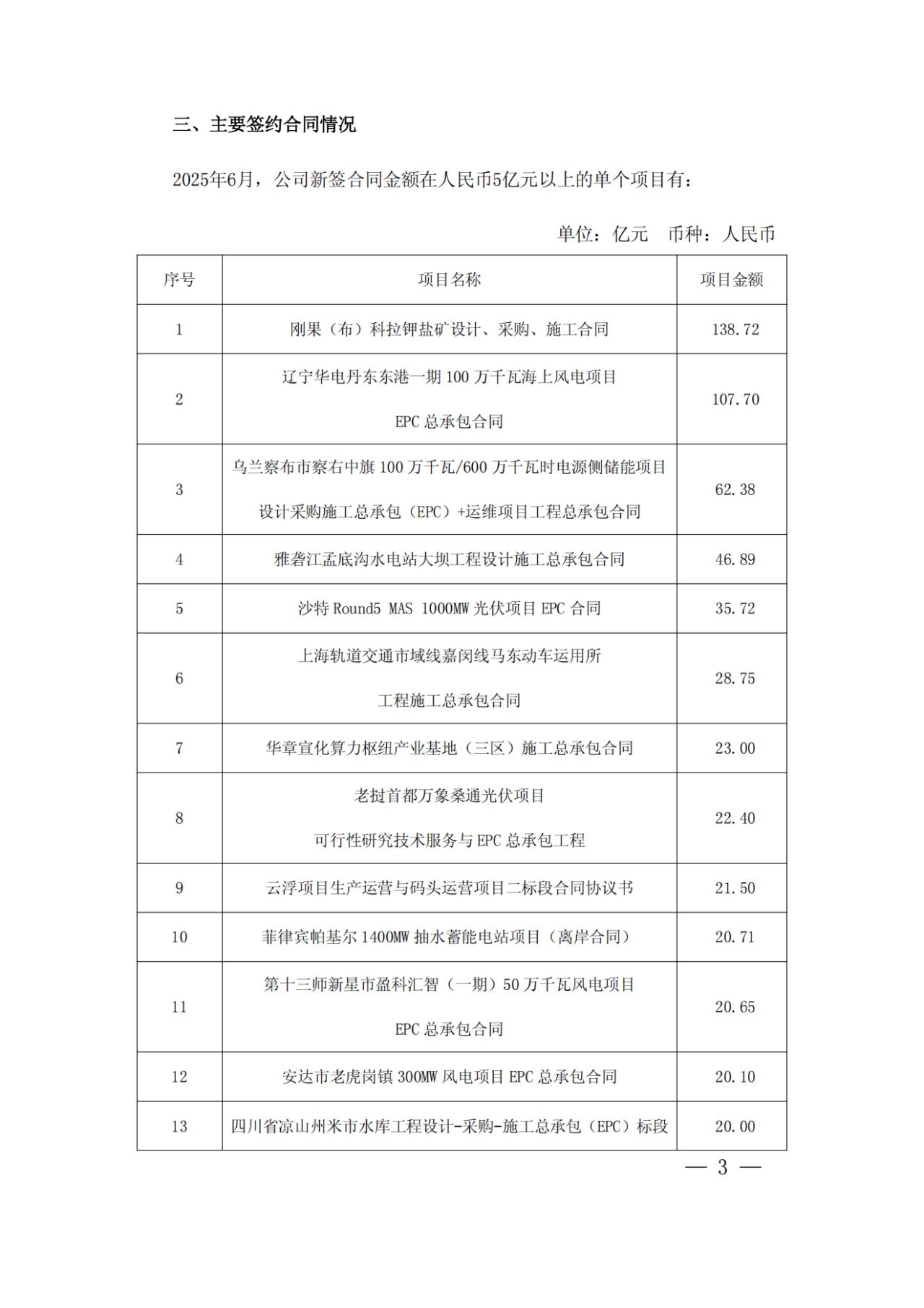 其中,新签水电项目576个,新签合同金额1004.55亿元;抽水蓄能新签项目数量292个,新签合同金额413.81亿元;风电新签项目数量652个,新签合同金额1429.02亿元;太阳能发电新签项目数量616个,新签合同金额1137.43亿元。6月公司新签合同金额在人民币5亿元以上的单个项目共70个。