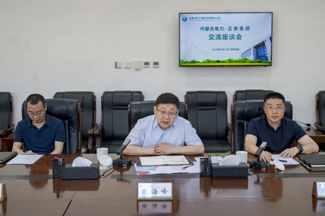 7月21日,内蒙古电力集团党委书记、董事长张海峰,党委副书记、总经理张晓虎,与到访的全国政协常委、中国民间商会副会长、正泰集团董事长南存辉一行举行座谈,双方就深化合作、推动内蒙古能源产业高质量发展进行交流。