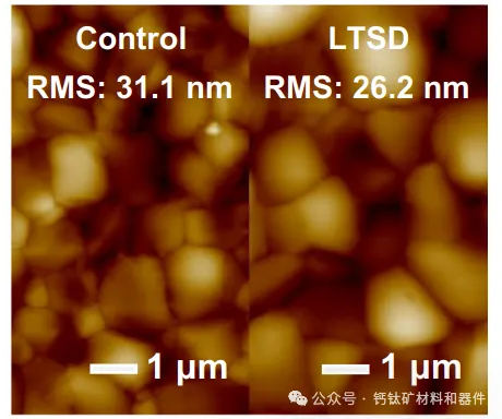 因此,LTSD 可以制造平均晶粒尺寸超过 1.3 μm 的高度结晶和纯 α 相钙钛矿薄膜,同时防止对埋藏 SAMs 的损坏并抑制顶部表面冗余 PbI2的形成。