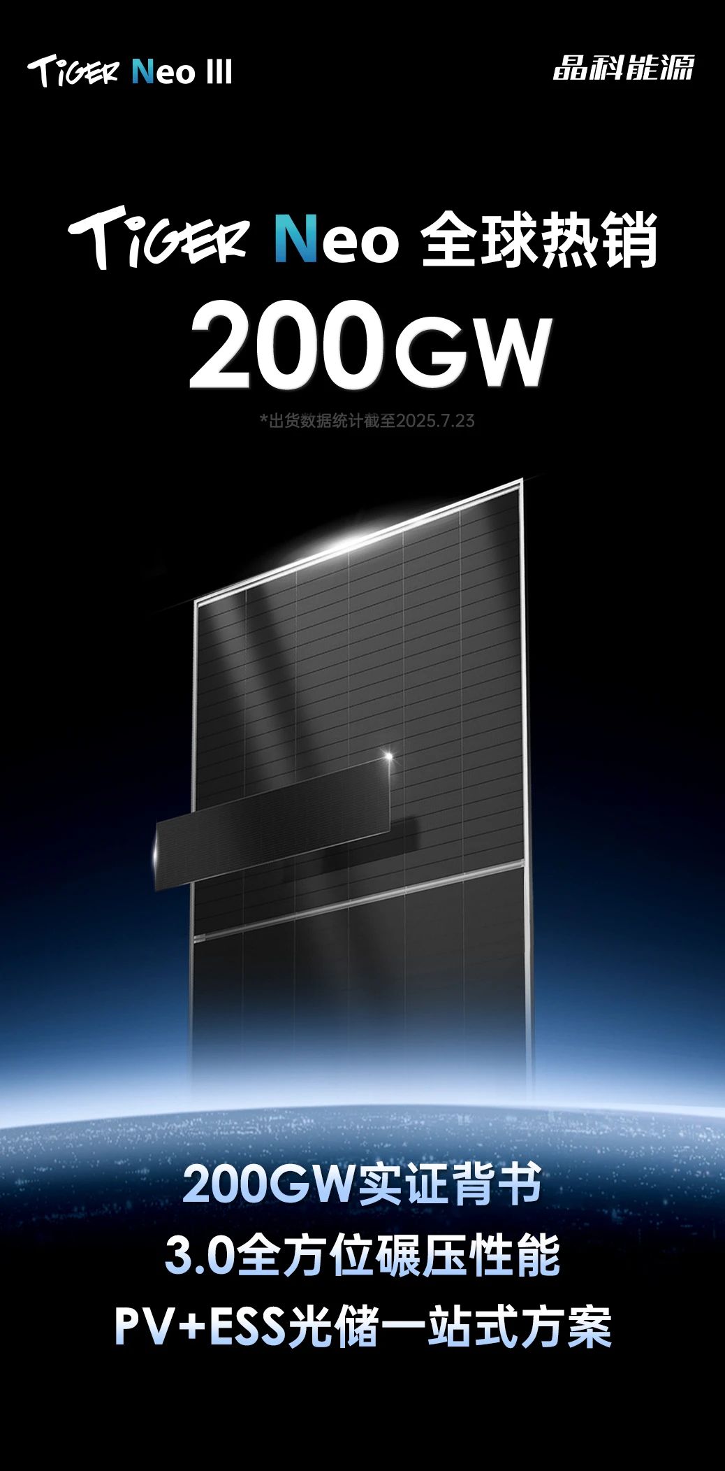 近期,晶科能源Tiger Neo系列组件全球累计出货量正式突破200GW,产品销往168个国家,其中分布式市场占比40%,再次刷新单品出货行业记录,成为史上最畅销组件系列。