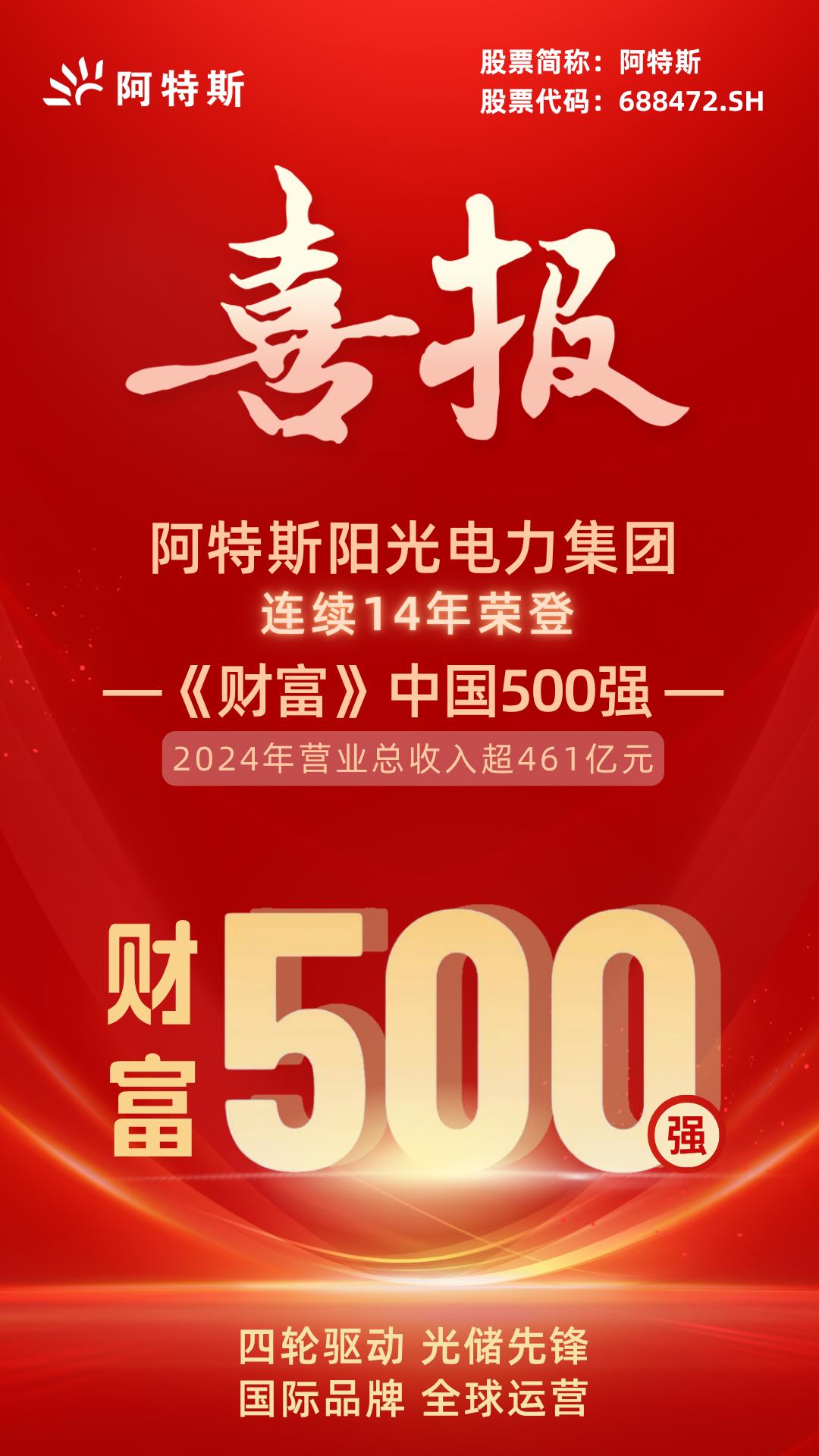 连续十四年上榜!阿特斯集团蝉联《财富》中国500强