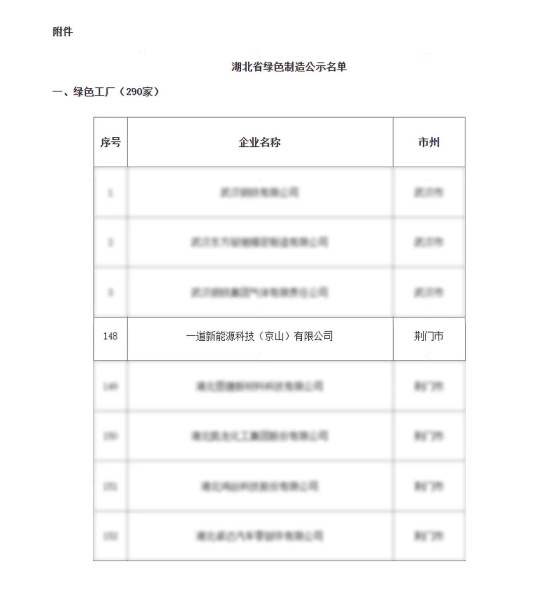 近日,湖北省经济和信息化厅正式公示2025年湖北省绿色制造名单,一道新能京山基地凭借在绿色制造体系建设及供应链可持续发展方面的卓越表现,荣获“绿色工厂”及“绿色供应链管理企业”两项殊荣。这是继衢州基地、泰州基地之后,一道新能第三次获得“绿色工厂”称号,也是公司持续推进制造业绿色低碳转型、构建绿色供应链体系的又一重要成果。
