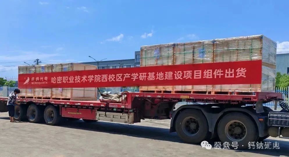 近日,纤纳光电成功出货哈密职业技术学院西校区产学研基地建设项目,共为哈密职业技术学院送去734片钙钛矿彩色组件,用于建设光伏幕墙。目前,组件已顺利送达项目地,即将投入安装。