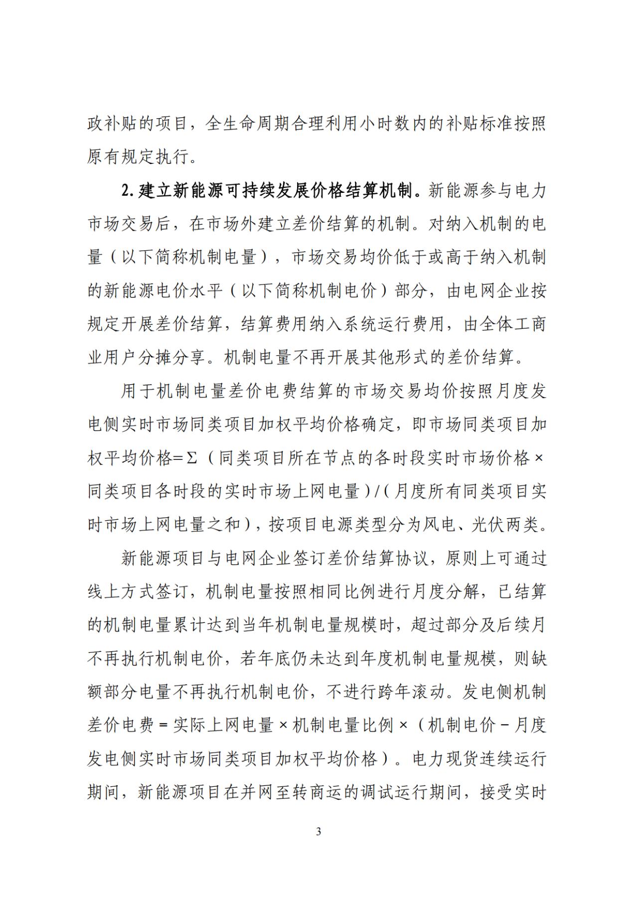 根据文件,新能源项目区分存量项目和增量项目,上网电量原则上全部进入电力市场在市场外建立差价结算的机制。