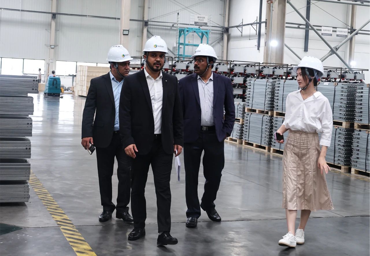 会议结束后,Mahindra团队一行参观了思拓自有的集研发、生产、安装、运维及仓储一体化生产线。凭借先进的生产设备以及智能化的生产模式和工艺流程,思拓再一次给客户留下了深刻印象。从原料采购到生产过程中每一道工序的严格把控,每个生产细节和过程都充分展现了思拓新能源在光伏智能清扫机器人领域原创的优势和领先的实力,赢得了客户的高度赞誉。