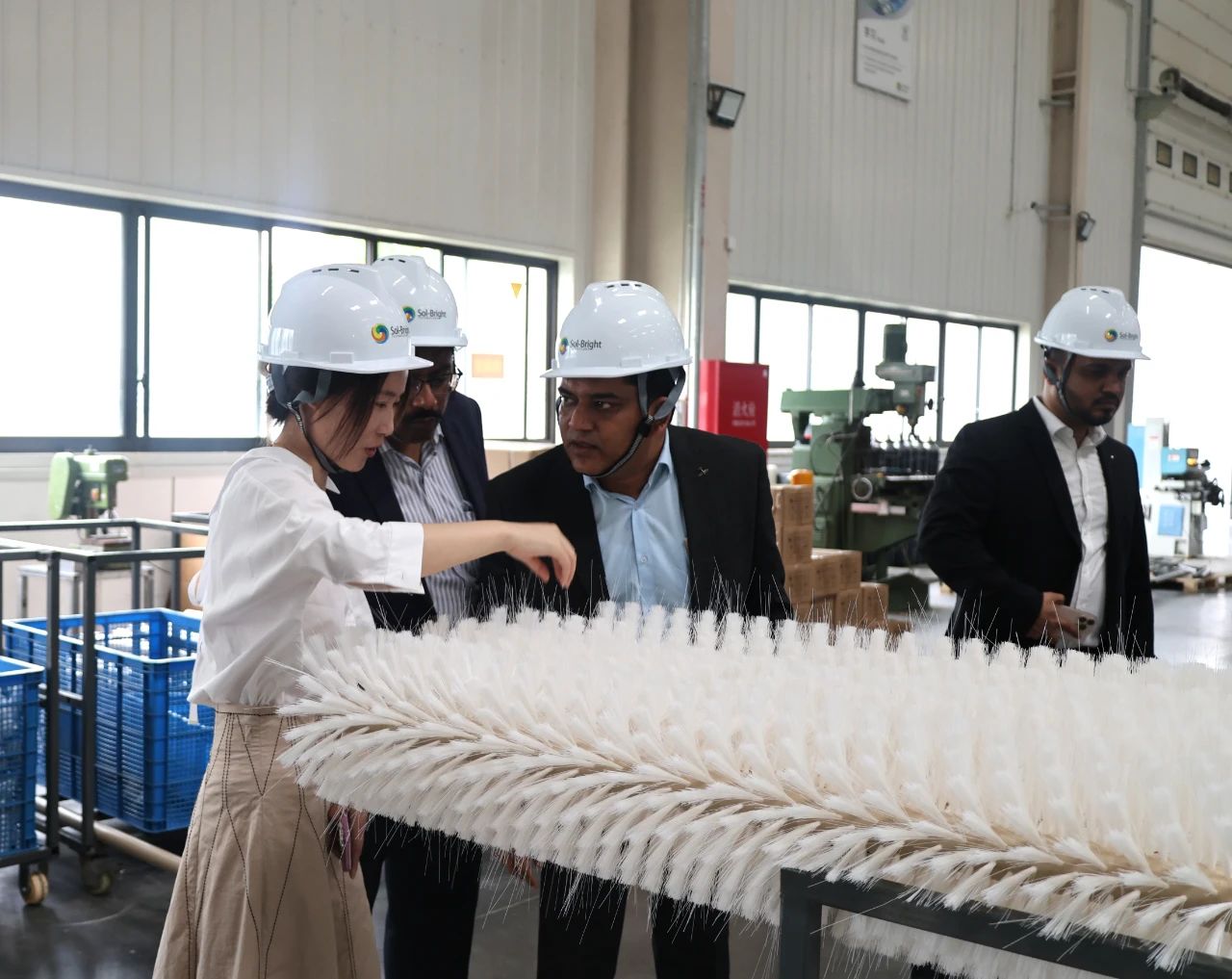 2025年7月25日,印度知名新能源企业Mahindra Susten代表到访思拓新能源总部,思拓相关工作人员热情接待。双方就光伏智能清扫机器人产品发展趋势、技术创新以及未来合作方向等议题展开了深刻交流,为未来合作开辟新的可能。