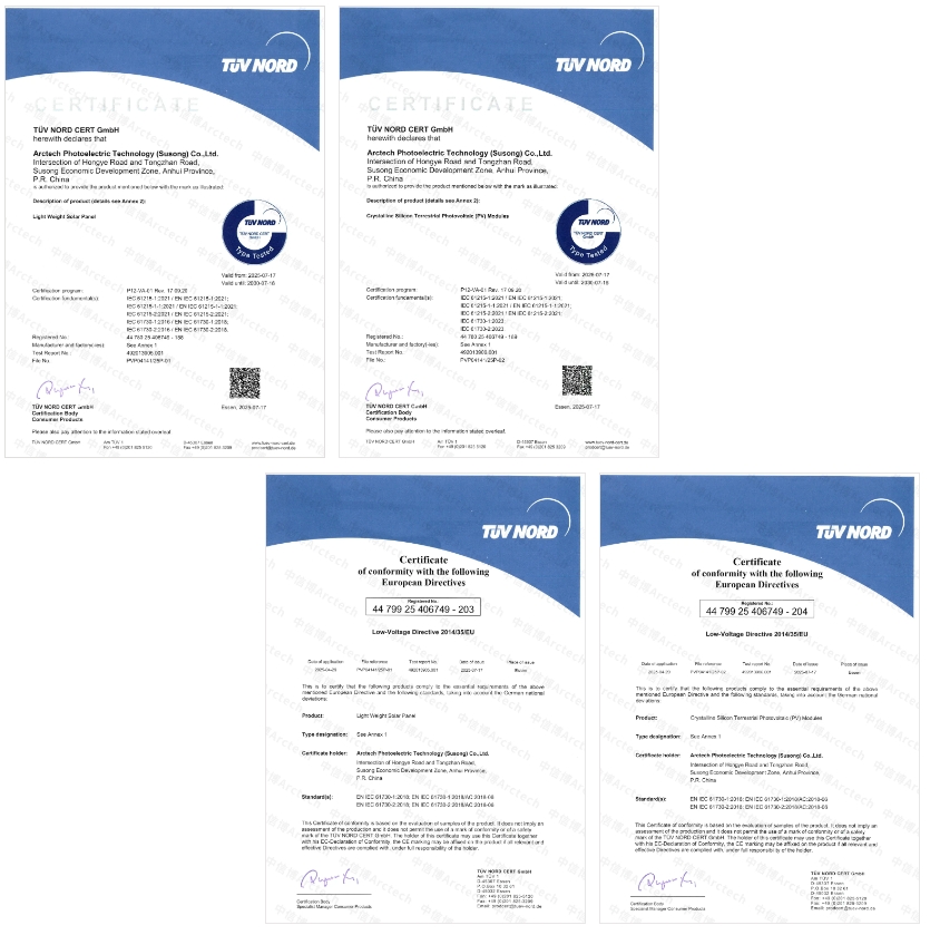 日前,中信博“绿电+”轻质组件、双玻组件、发电幕墙及地砖等多款产品成功通过IEC 61215、IEC 61730标准中的严苛测试挑战,并正式获得全球权威第三方检测认证机构TÜV北德集团颁发的认证证书。