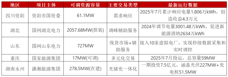 国内领先的虚拟电厂平台资源接入量已达千户级别。国网湖北电力调控中心累计接入虚拟电厂 35 家,其中 26 家已注册公示,接入可调用户 2248 家、终端资源 12270 个,涵盖新能源汽车充电桩、铁塔基站、空调、工业负荷等 20 余类资源 。资阳市虚拟电厂平台接入工商业企业 143 户、公立医院 12 户、公共机构 17 户、充电站 75 座,形成 61.1 兆瓦的可调资源池 。