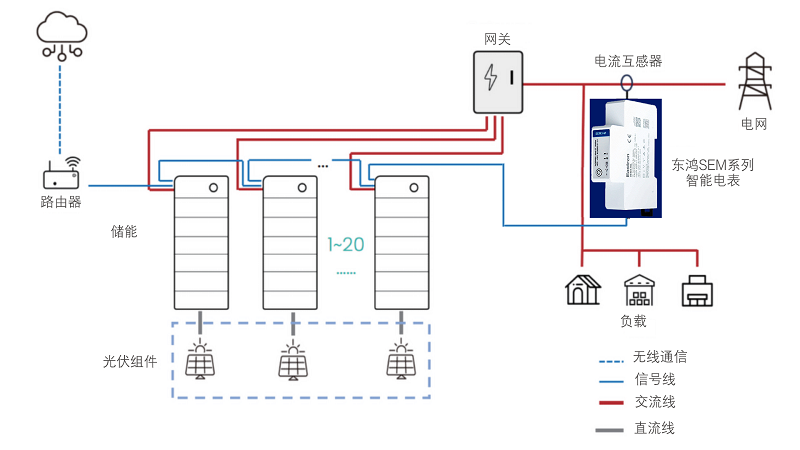 东鸿SEM1-WL-2: 在东鸿SEM1-M-2智能电表的基础上,新增WIFI无线通讯功能,解决了RS485通讯接线不方面的问题。用户或运维人员可通过网络远程便捷查看发电量、用电量、功率等实时数据,让电能管理更智能科学。其防逆流性能出色,能有效防止光伏发电向电网逆向输送,保障电网安全及用户用电合规。